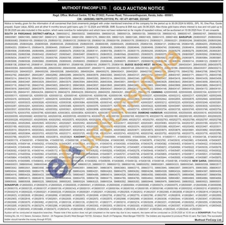 Muthoot Fincorp Ltd Gold Auctions Auction in South 24 Parganas