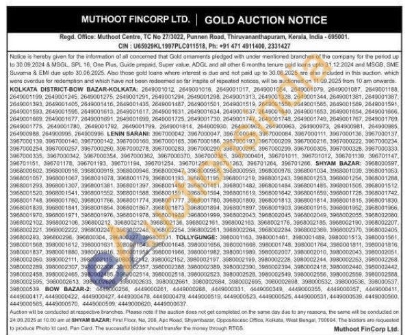 Muthoot Fincorp Ltd Gold Auctions Auction in Kolkata