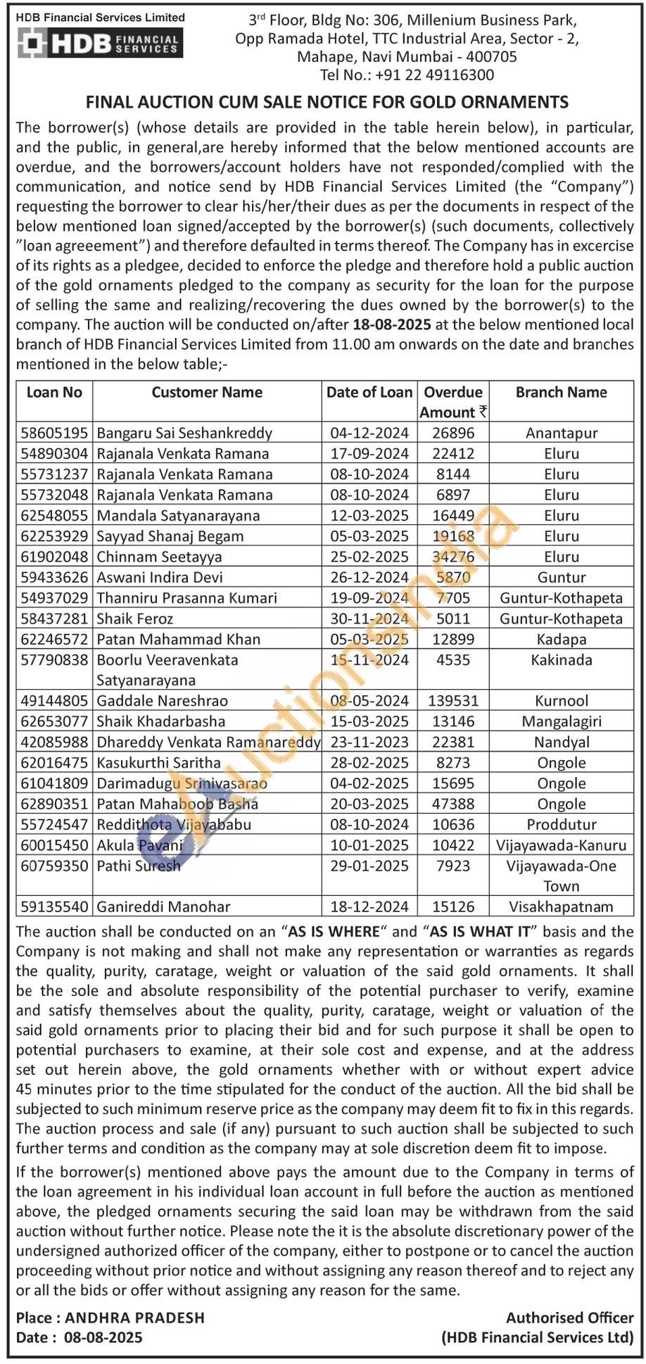 HDB Financial Services Limited Gold Auctions Auction in Navi Mumbai