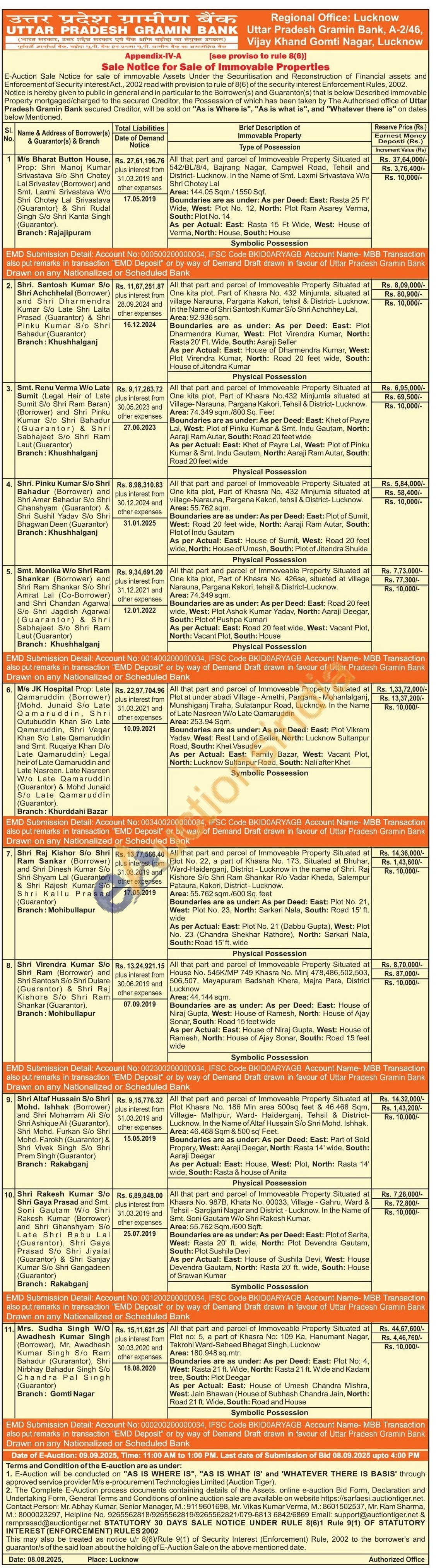 9) All that part and parcel of Immoveable Property Situated at Plot Khasra No. 186 Min area 500sq feet & 46.468 Sqm, Village Malhpur, Ward Haiderganj, Tehsil & District-Lucknow. In the Name of Altaf Hussain S/o Shri Mohd. Ishhak. Area: 46.468 Sqm & 500 sq' Feet. Boundaries are as under: As per Deed: East: Part of Sold Propery, West: Aaraji Deegar, North: Rasta 14' wide, South: Aaraji Deegar As per Actual: East: House, West: Plot, North: Rasta 14' wide, South: Rasta & house of Anita