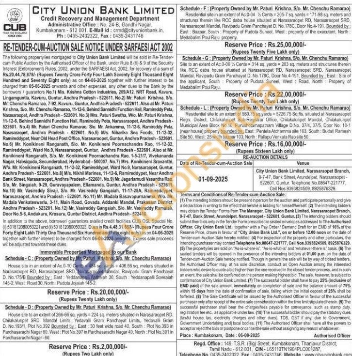 Residential site in an extent of Ac.0-04 Cents 205-7 sq yards 171-98 sq. meters and structures therein like RCC daba house situated at Narasaraopet RD, Narasaraopet SRD. Narasaraopet Mandal, Ravipadu Gram Panchayat D. No. 178C. Door No.4-191, Bounded by East: Bazaar, South Property of Pudota Suneel, West property of the executant, North Medabaimi Poul Raju property.