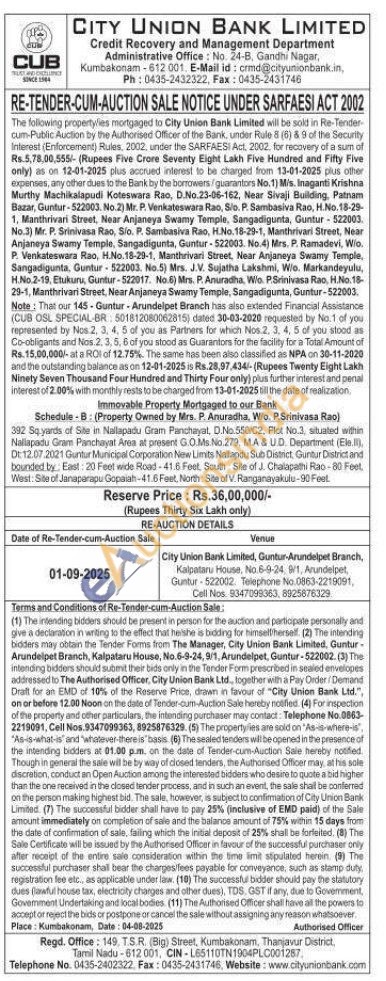 392 Sq yards of Site in Nallapadu Gram Panchayat, D.No.550/C2, Plot No.3. situated within Nallapadu Gram Panchayat Area at present G.O.Ms.No.279, M.A & UD. Department (Eleil), Dt: 12.07.2021 Guntur Municipal Corporation New Limits Nalapdu Sub District, Guntur District and bounded by East: 20 Feet wide Road-41.6 Feet South Site of J. Chalapathi Rao-80 Feet, West: Site of Janaparapu Gopalah-41.6 Feet, North: Site of V. Ranganayakulu-90 Feat