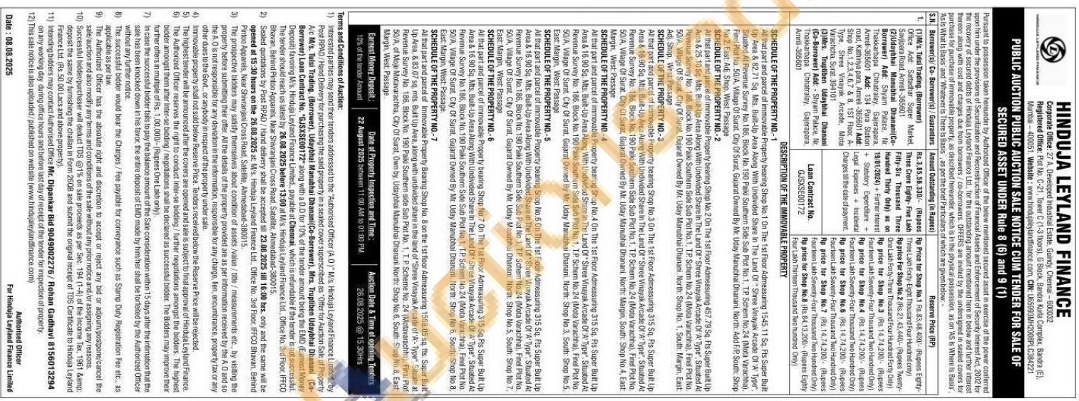 All that part and parcel of immovable Property bearing Shop No.6 On The 1st Floor Admeasuring 315 Sq. Fts Super Built Up Area & 16.90 Sq. Mts. Built-Up Area Along With Undivided Share In The Land Of Shree Vinayak Arcade Of 'A' Type", Situated At Revenue Survey No. 186, Block No. 190 Paiki Southern Side Sub Plot No. 1. T.P. Schem No.24 (Mota Varachha), Finel Plot No. 50/A, Village Of Surat. City Of Surat, Gujarat Owned By Mr. Uday Manubhai Dhanani. North: Shop No.5, South: Shop No.7. East: Margin, West Passage