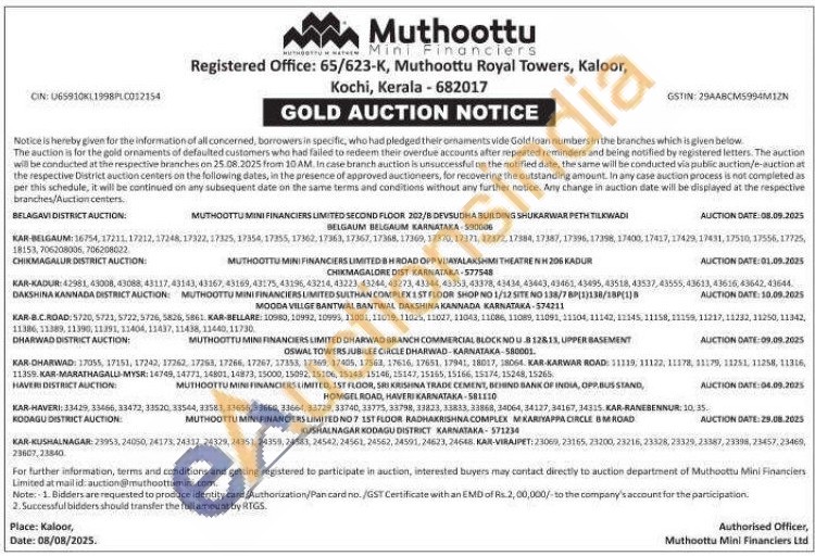 Muthoottu Mini Financiers Limited Gold Auctions Auction in Kochi