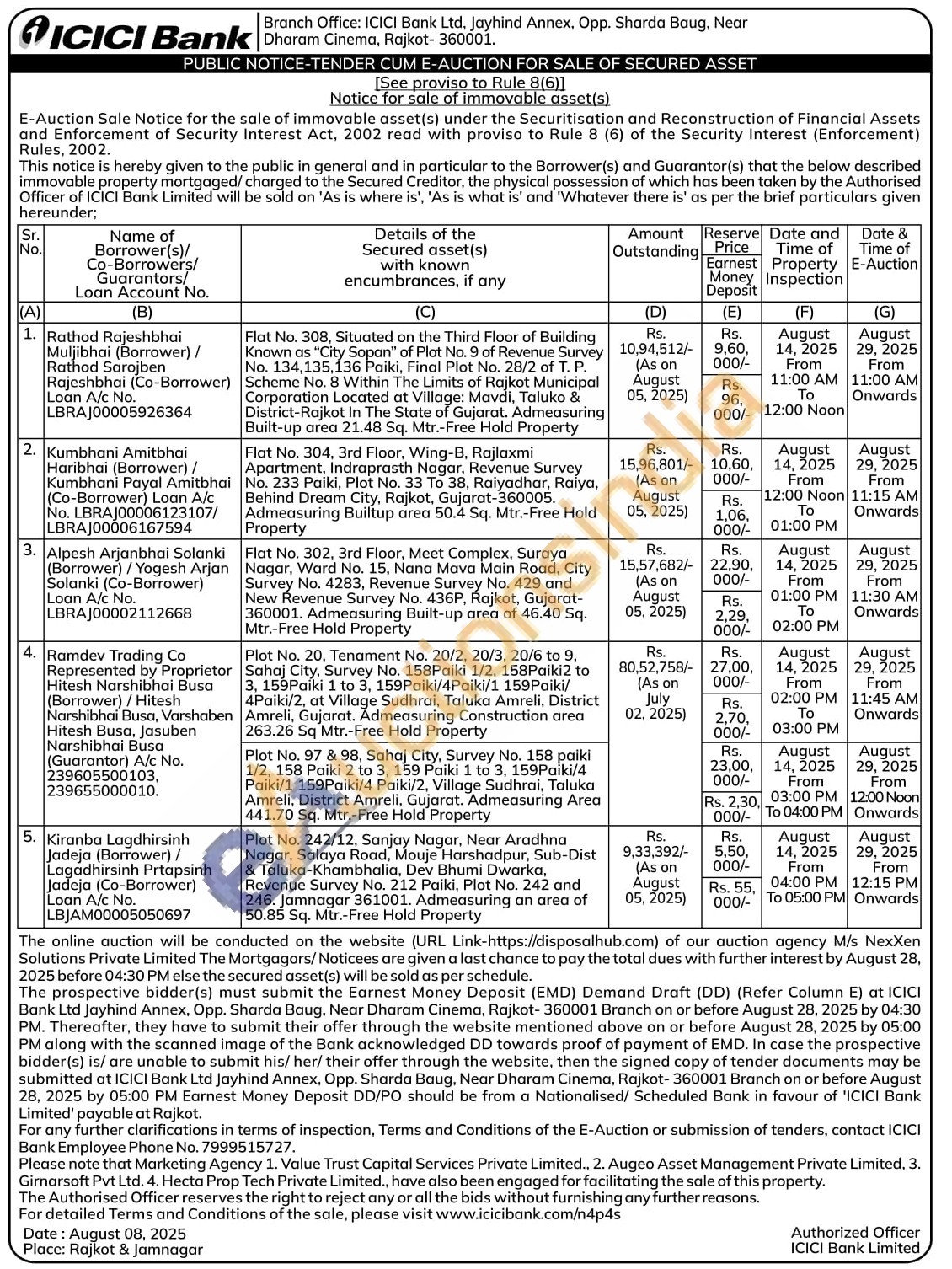 Plot No. 242/12, Sanjay Nagar, Near Aradhna Nagar, Salaya Road, Mouje Harshadpur, Sub-Dist & Taluka-Khambhalia, Dev Bhumi Dwarka, Revenue Survey No. 212 Paiki, Plot No. 242 and 246. Jamnagar 361001. Admeasuring an area of 50.85 Sq. Mtr.-Free Hold Property