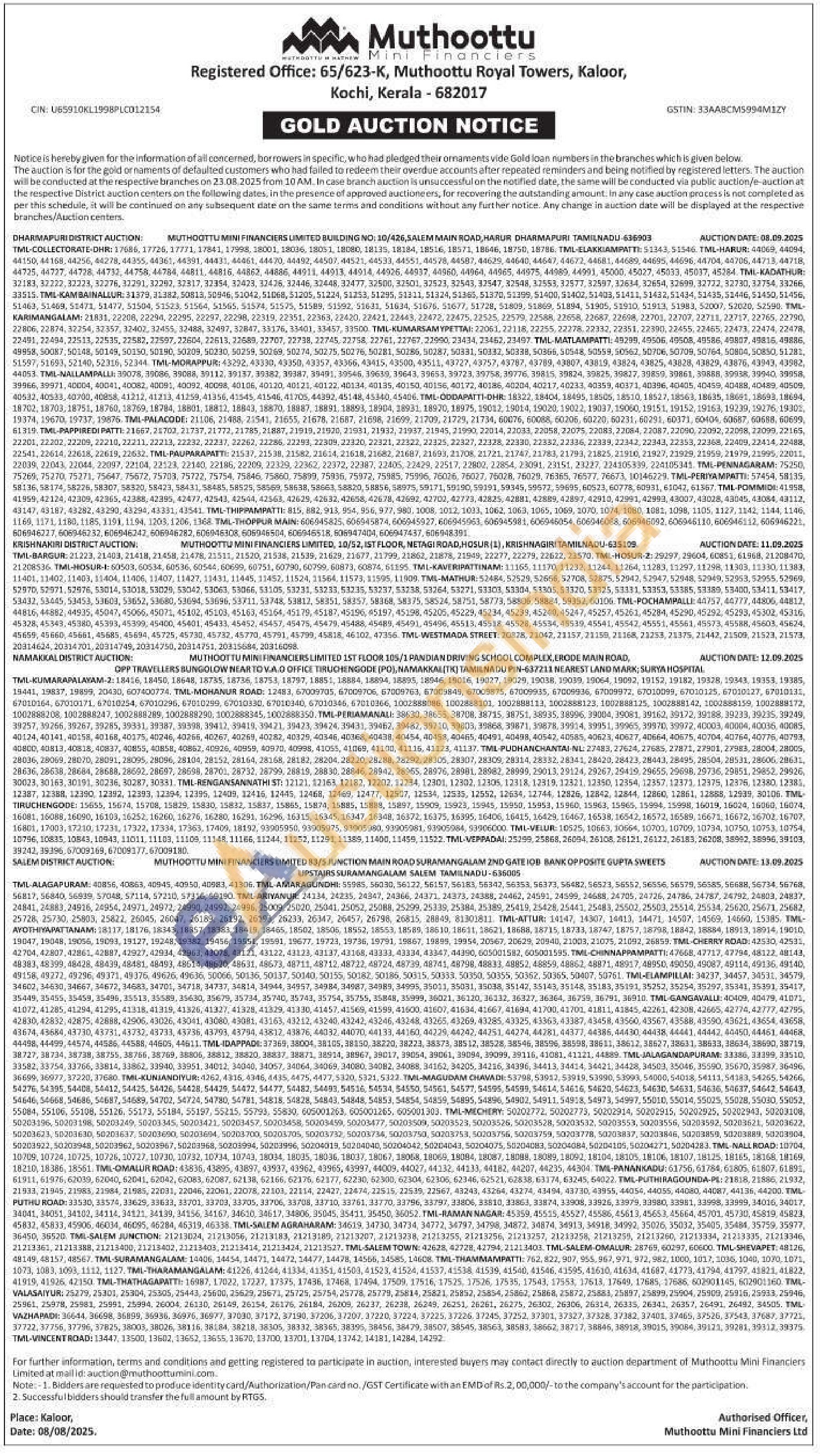 Muthoottu Mini Financiers Limited Gold Auctions Auction in Dharmapuri