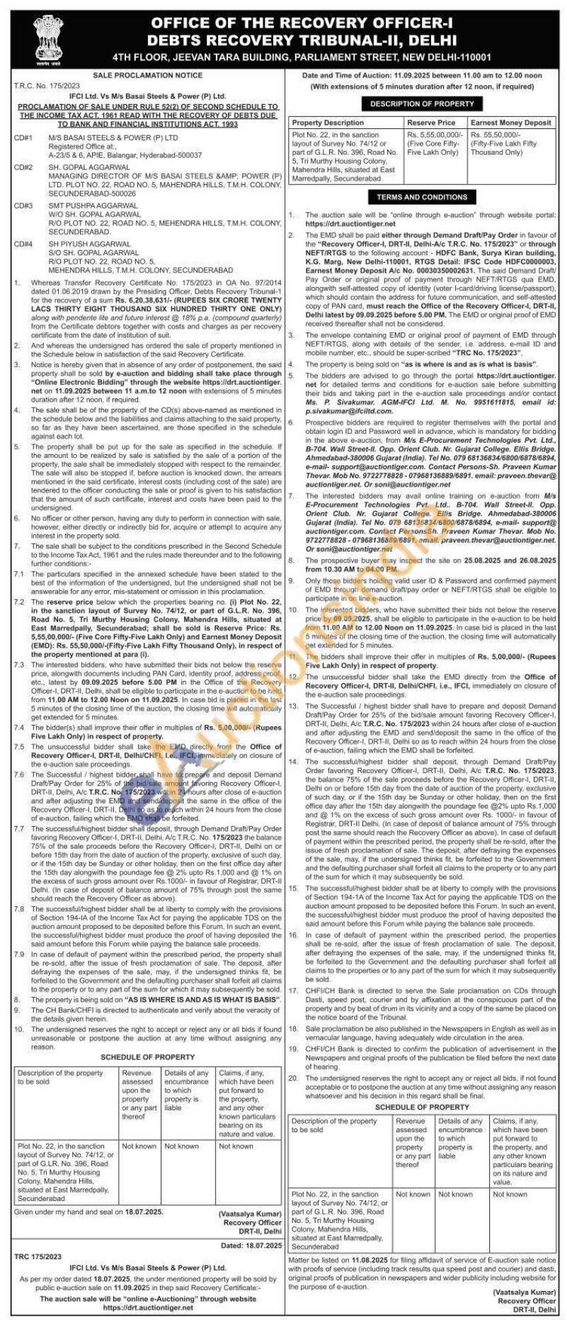 Plot No. 22, in the sanction layout of Survey No. 74/12 or part of G.L.R. No. 396, Road No. 5. Tri Murthy Housing Colony, Mahendra Hills, situated at East Marredpally, Secunderabad
