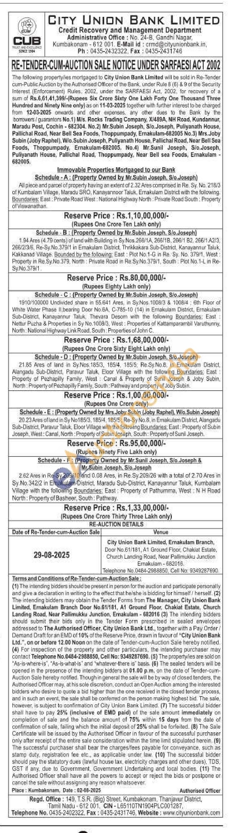 Schedulle-F: (Property Owned by Mr.Sunil Joseph, Sio. Joseph & Mr. Subin Joseph, Slo, Joseph