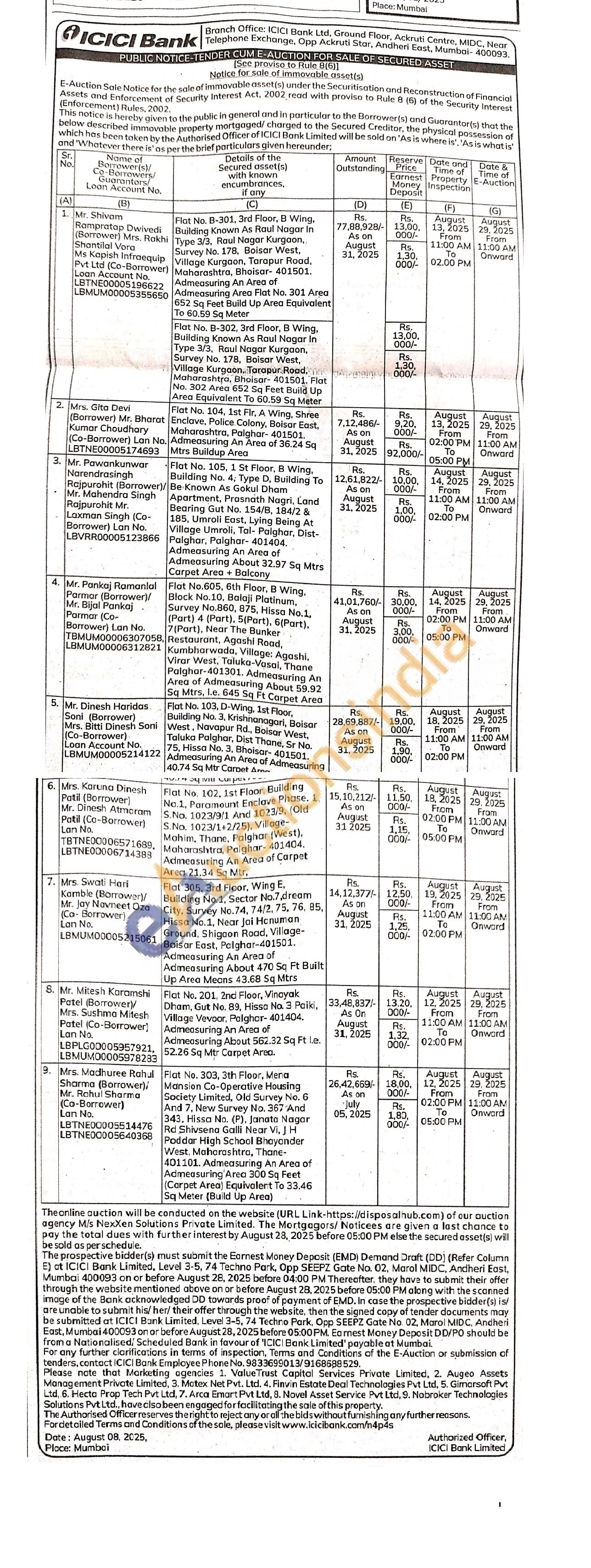 Flat No. B-301, 3rd Floor, B Wing, Building Known As Raul Nagar In Type 3/3, Raul Nagar Kurgaon, Survey No. 178, Boisar West, Village Kurgaon, Tarapur Road, Maharashtra, Bhoisar- 401501. Admeasuring An Area of Admeasuring Area Flat No. 301 Area 652 Sq Feet Build Up Area Equivalent To 60.59 Sq Meter