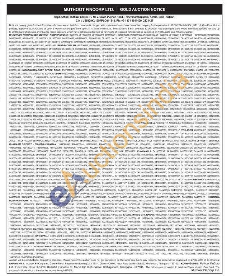 Muthoot Fincorp Ltd Gold Auctions Auction in Bhadradri Kothagudem