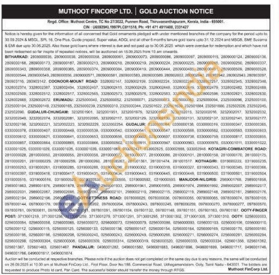 Muthoot Fincorp Ltd Gold Auctions Auction in Nilgiris