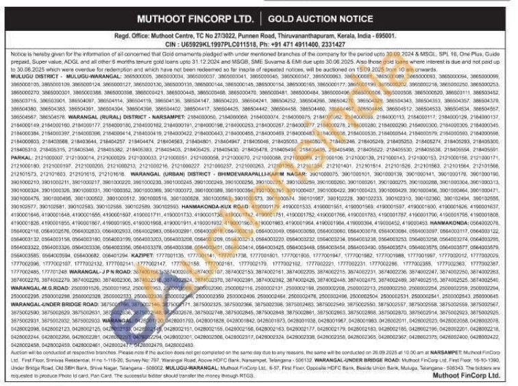 Muthoot Fincorp Ltd Gold Auctions Auction in Mulugu