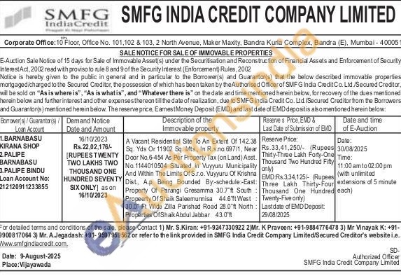 A Vacant Residential Site To An Extent Of 142.38 Sq. Yds Or 11902 Sq. Mts., In R.з.ла. 697/1, Near Door No. 6-454 As Per Property Tax (on Land) Asst. No. 1144010504 Situated in Vuyyuru Municipality And Within The Limits Of S.zo. Vuyyuru Of Krishna Dist. Ap Being Bounded By:-schedule:-East: Property Of Parangi Gresamma 30.7 ft South Propeerty Of Shaik Saleemunnisa 44.6ft West 30.0 Ft Wide Zilla Parishad Road 28.0'ft North Properties Of Shaik Abdul Jabbar 43.0