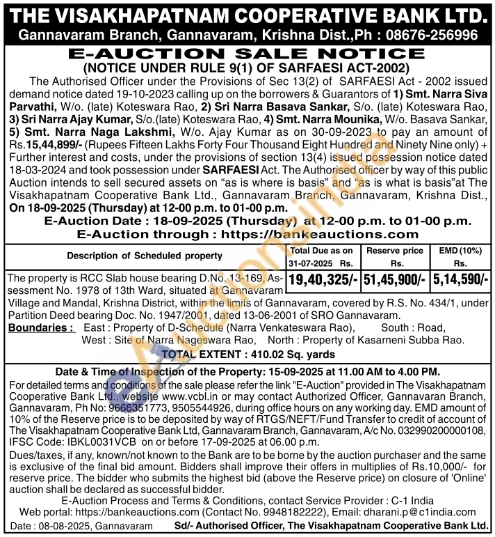 Authorized Officer Gannavaran Branch Phone No : 9666351773 / 9505544926