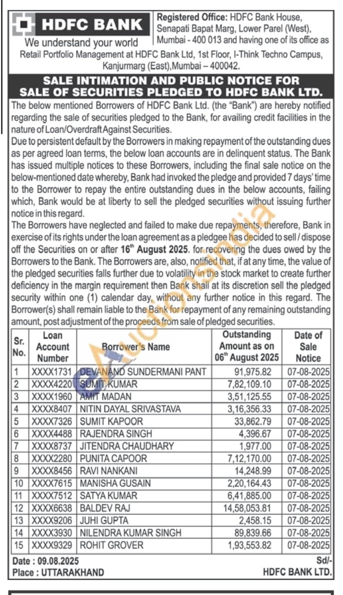 HDFC Bank Gold Auctions Auction in Mumbai