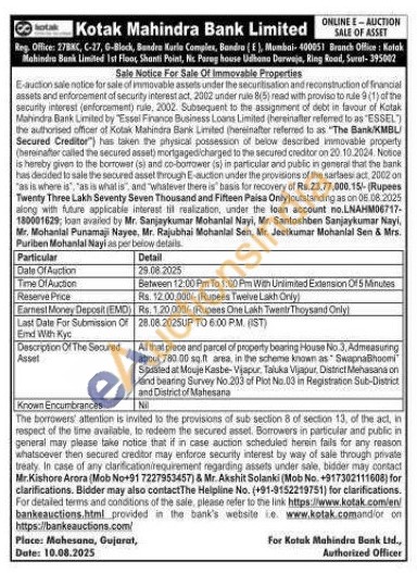 All that piece and parcel of property bearing House No.3, Admeasuring about 780.00 sq ft area, in the scheme known as Swapnalihoomi Situated at Mouje Kasbe-Vijapur. Taluka Vijapur, District Mehasana on land bearing Survey No 203 of Plot No. 03 in Registration Sub-District and District of Mahesana