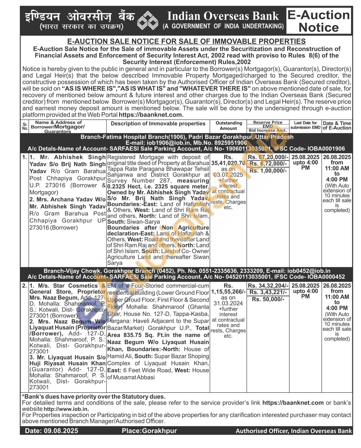 EM of a Four-Storied commercial-cum residential building (Lower Ground Floor Upper Groud Floor, First Floor & Second Floor) Mohalla: Shahmaroof (Ghanta Ghar, House No. 127-D, Tappa-Kasba, Pargana: Haveli Adjacent to the Supar Bazar/Market) Gorakhpur U.P., Total Area 835.75 Sq. Ft.in the name of Naaz Begum W/o Liyaquat Husain Khan, Boundaries:-North: House of Hamid Ali, South: Supar Bazar Shoping Complex of Liyaquat Husain Khan, East: 6 Feet Wide Road, West: House of Musarrat Abbasi