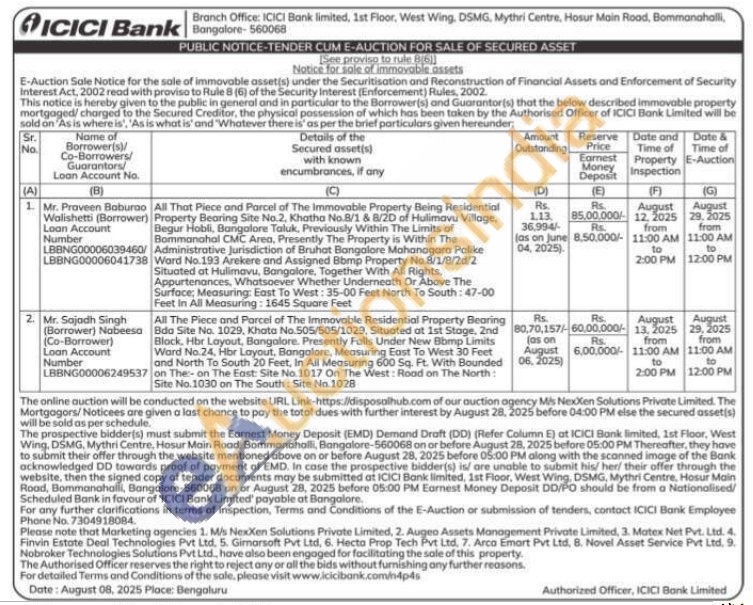The Piece and Parcel of The Immovable Residential Property Bearing Bdo Site No. 1029, Khata No.505/505/1029, Situated at 1st Stage, 2nd Block, Har Layout, Bangalore. Presently Falls Under New Bbmp Limits Ward No.24. Hor Layout, Bangalore, Measuring East To West 30 Feet and North To South 20 Feet, In All Measuring 600 Sq. Ft. With Bounded on The on The East: Site No. 1017 On The West: Road on The North: Site No.1030 on The South Site No.1028