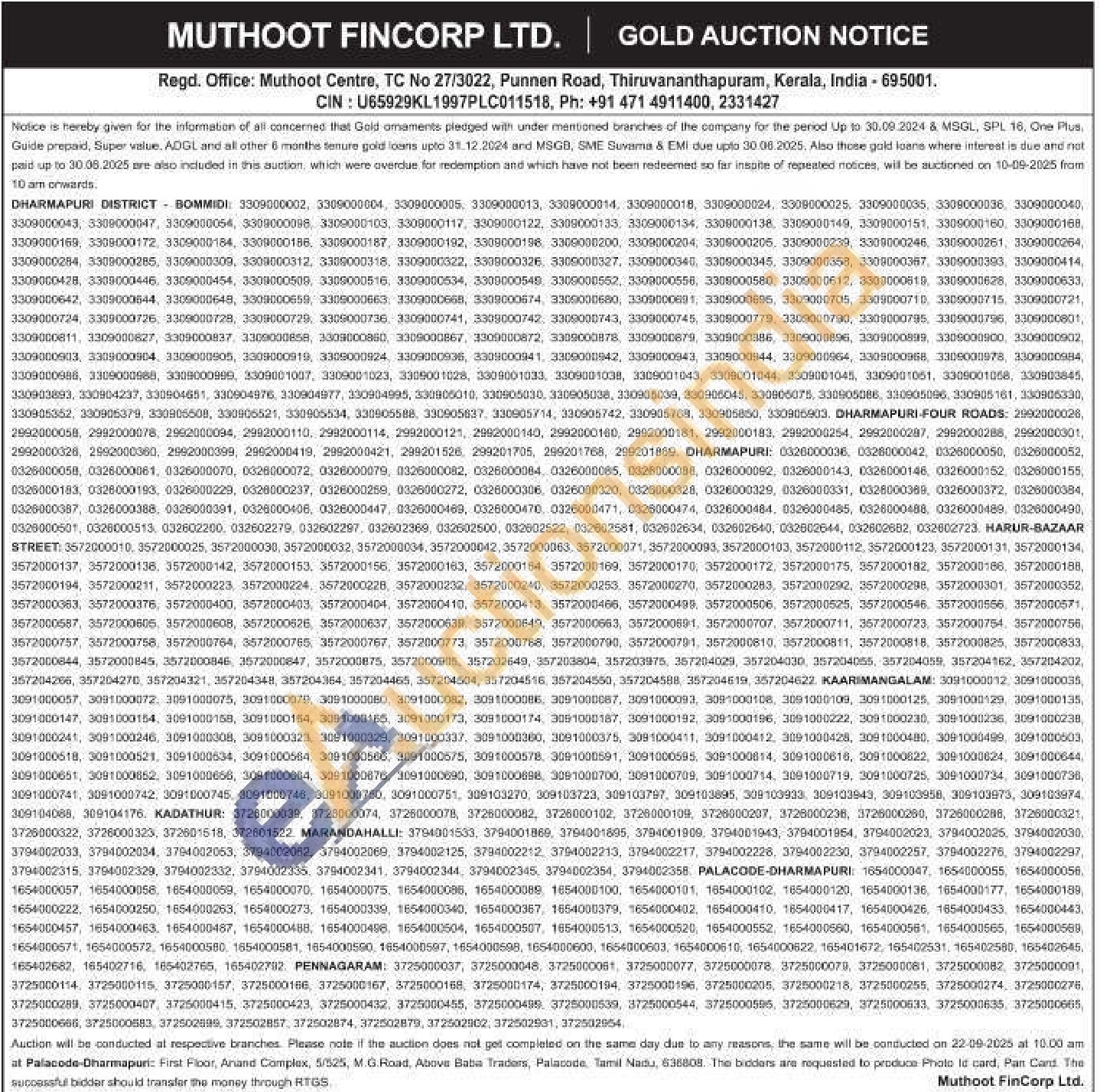 Muthoot Fincorp Ltd Gold Auctions Auction in Thiruvananthapuram