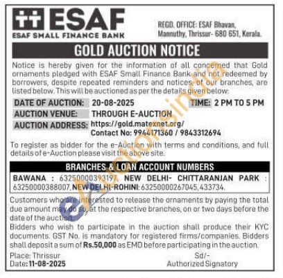 ESAF SMALL FINANCE BANK Gold Auctions Auction in New Delhi