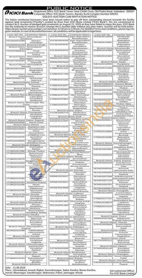 ICICI Bank Gold Auctions Auction in Ahmedabad