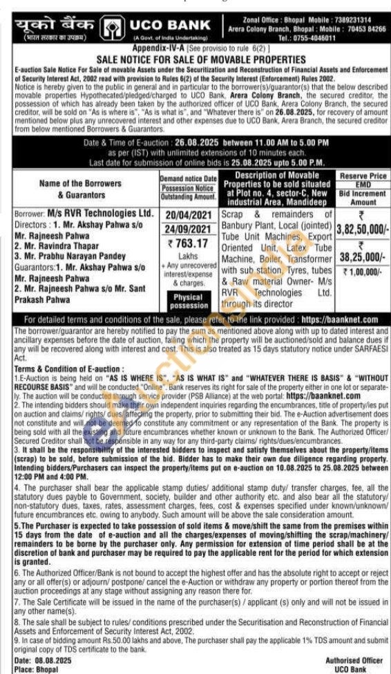 Scrap & remainders of Banbury Plant, Local (jointed) Tube Unit Machines, Export Oriented Unit, Latex Tube Machine, Boiler, Transformer with sub station, Tyres, tubes & Raw material Owner- M/s RVR Technologies Ltd. through its director