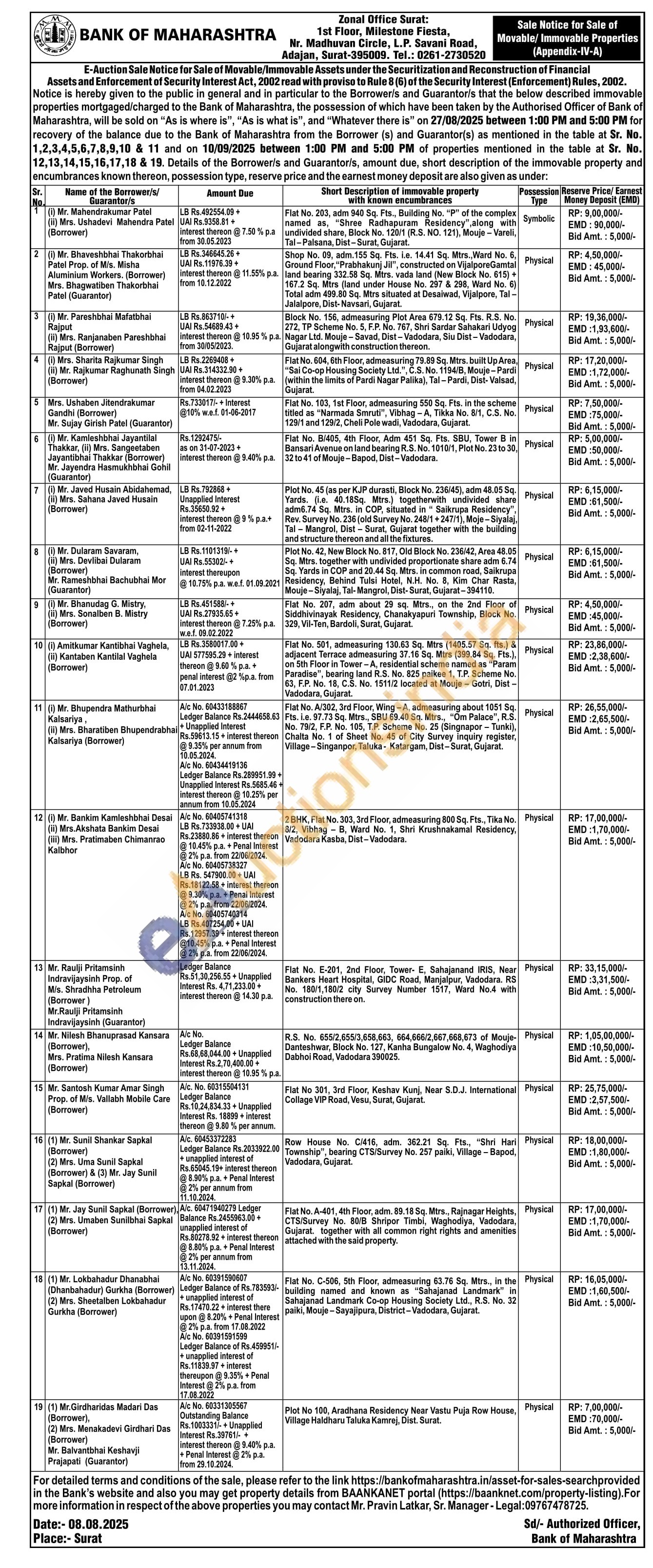Plot No. 45 (as per KJP durasti, Block No. 236/45), adm 48.05 Sq. Yards. (i.e. 40.18Sq. Mtrs.) togetherwith undivided share adm6.74 Sq. Mtrs. in COP, situated in "Saikrupa Residency", Rev. Survey No. 236 (old Survey No. 248/1 +247/1), Moje-Siyalaj, Tal-Mangrol, Dist - Surat, Gujarat together with the building and structure thereon and all the fixtures