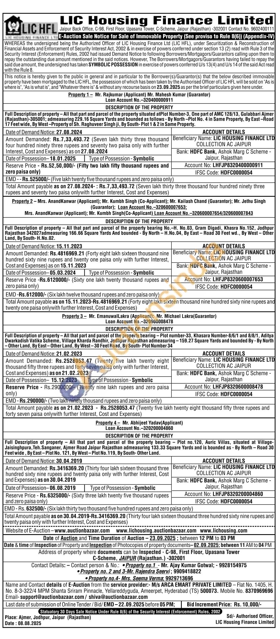 1) All that part and parcel of the property situated atPlot Number-3, One part of AMC 128/13, Gulabbari Ajmer (Rajasthan)-305001; admeasuring 229.16 Square Yards and bounded as follows - By North-Plot No. 4 in Same Property, By East-Road 17 Feet wide, By West-Property of Sh. Raghuveer Singh ji, By South-Plot 1 & 2 in Same Property.