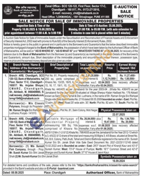 Equitable Mortgage of Residential Property comprised of Khasra No 4975/1/2 Min (1-2-5/12) Khata No. 798/4935 as per the Jamabandi for the Year 2012-13 whichs 3,4/5/22 5/12 share of the total land measuring 00 Bigha 3, 4/5 Biswa, situated at Street B.K. Colony, Patti Jhutti, Tehsil and District Bathinda