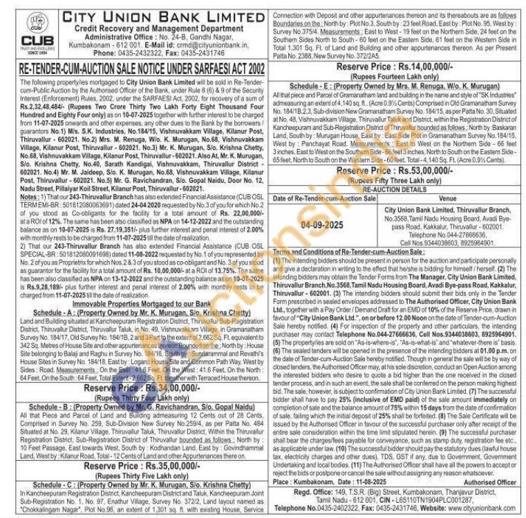 Schedule-B: (Property Owned by Mr. G. Ravichandran, Sio, Gopal Naidu) All that Piece and Parcel of Land and Building admeasuring 12 Cents out of 28 Cents, Comprised in Survey No. 259, Sub-Division New Survey No 259/4, as per Patta No. 484 Situated at No. 29, Kilanur Village, Thiruvallur Taluk, Thiruvallur District, Within the Thiruvallur Registration District. Sub-Registration District of Thiruvallur bounded as follows, North by 10 Feet Passage, East towards West, South by Kodhandan Land. East by: Govindhammal Land, West by: Kanur Road. Total-12 Cents of Land and other Appurtenances there on