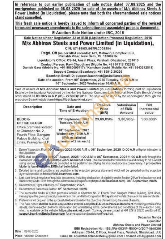 Office premises located at Chamber No. 2, Fourth Floor, Sangam Palace Building. Civil Lines, Prayagraj-U.P