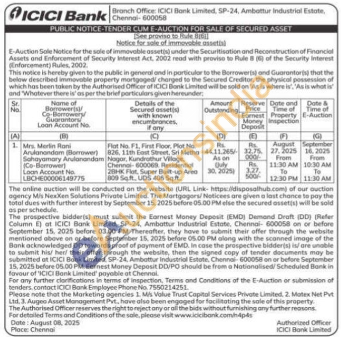 Flat No. F1, First Floor, Plot No. 826, 11th East Street, Sri Metha Nagar, Kundrathur Village. Chennai-600069. Residential 28HK Flat, Super Built-up Areo 809 Sq.ft., UDS 406 Sq.ft
