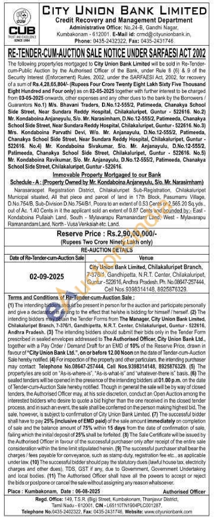 Contact Telephone No: 0435-2414331 Cell No. 9380351780