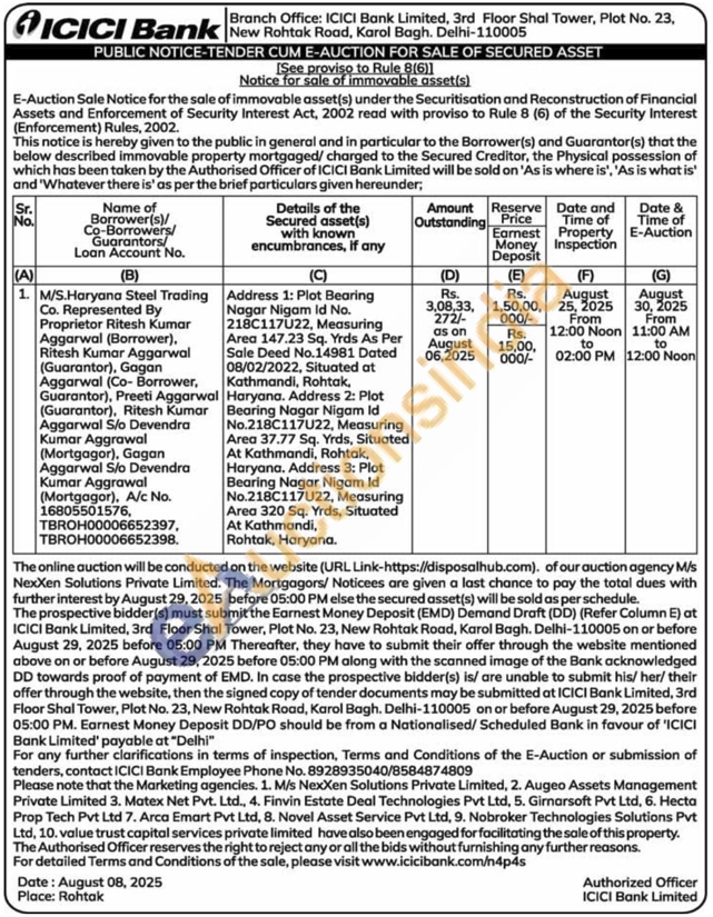 Address 1: Plot Bearing Nagar Nigam Id No. 218C117022, Measuring Area 147.23 Sq. Yrds As Per Sale Deed No.14981 Dated 08/02/2022, Situated at Kathmandi, Rohtak, Haryana. Address 2: Plot Bearing Nagar Nigam Id No.218C117U22, Measuring Area 37.77 Sq. Yrds, Situated At Kathmandi, Rohtak, Haryana. Address 3: Plot Bearing Nagar Nigam Id No.218C117U22, Measuring Area 320 Sq. Yrds, Situated At Kathmandi, Rohtak, Haryana.