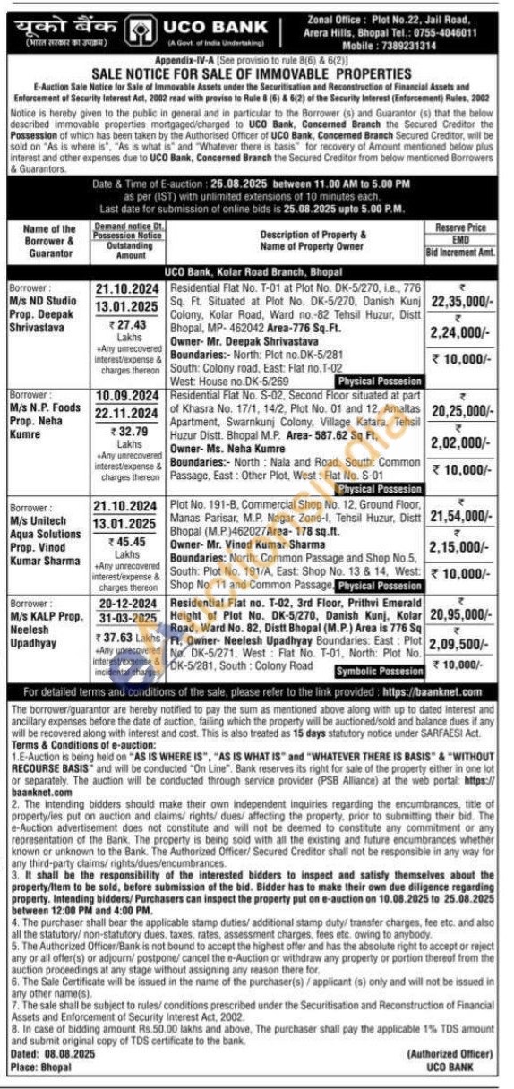 Residential Flat No. T-01 at Plot No. DK-5/270, i.e., 776 Sq. Ft. Situated at Plot No. DK-5/270, Danish Kunj Colony, Kolar Road, Ward no.-82 Tehsil Huzur, Distt Bhopal, MP-462042 Area-776 Sq.Ft.