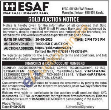 ESAF SMALL FINANCE BANK Gold Auctions Auction in Guntur