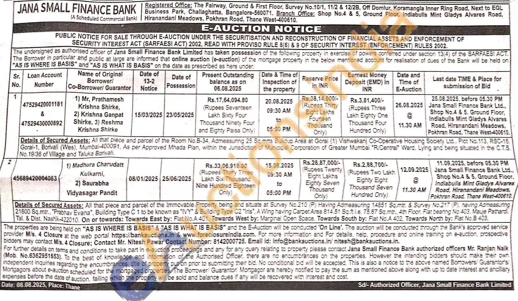 2)All that piece and parcel of the Immovable Property being and situate at Survey No.210 (P) Having Admeasuring 14851 Sq.mtr. & Survey No.217 (P), having Admeasuring 21600 Sq.mtr., "Prabhav Evana", Building Type C 1 to be known as "IVY" & Building Type C2 "Iris", A Wing having Carpet Area 814.51 Sq.ft i.e. 75.67 Sq.mtr., 4th Floor, Flat bearing No. 403, Mauje Pathardi Tal. & Dist. Nashik-422010. On or towards: Towards East by: Flat No.A 401, Towards West by: Marginal Open Space, Towards South by: Flat No.A 402, Towards North by: Flat No B 403