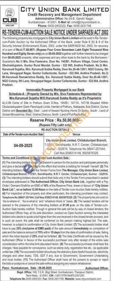 Ac099 Cents of Site in Pothuru Gram 0.Nos. 145/81, 147/1A 147/18 Situated Within Obulanaidupalem Gram Panchayat Limits. Hamlet of Pothuru, Nallapadu Sub-District, Guntur District and Bounded By: East Land of Aswani Nursing Home Dr Seshu, South. Land of Gonam Bhusamma, West: Grama Chenivu, North: Land of Puli Rama Rao