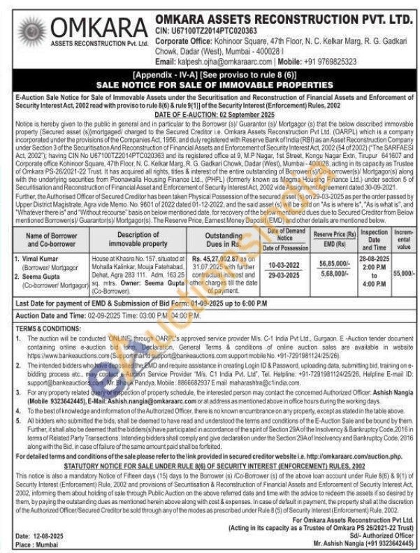 House at Khasra No. 157, situated a Mohalla Kalinkar, Mouja Fatehabad. Dehat. Agra 283 111. Adm, 163.25 sq. mitrs