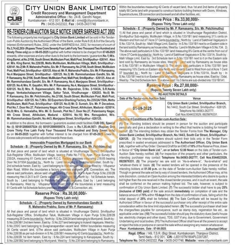 ) All that piece and parcel of land which is situated in Virudhunagar Registration District, Srivilliputhur Sub-registry. Mulikulam Village, in S.No. 133/181 land measuring 31% cents on Westem end from out of 1 Acre 37 Cents bounded by, North by: Land of Sakthivel Vagaiyara in S.No. 133/1A, South by: Malli Village Limit, East by: In S.No. 133/181 next to on Eastern side in the land sold by Ramasamy as house sites, West by: Land in Mullikulam Village in S.No. 134. 2) The above said particulars in S.No. 133/181 land measuring 8% Cents at the centre from out of 1Acre 37 Cents bounded by: North by: Land of Sakthivel Vagaiyara in S. No. 133/1A, South by: Malli Village Limit, East by: 3rd Schedule item in S.No. 133/181 next to it on the Eastem side land sold by Ramasamy as house sites, West by: Land sold by Ramasamy as house sites in S.No. 133/181 in Mullikulam Village. 3) The above said particulars in 5.No. 133/181 tand measuring 10% Cents on Eastern side North end towards East to West from out of Acre 1 Cent 37 bounded by North by Land of Sakthivel Vagaiyara in S.No. 133/1A, South by in S.No. 133/181 next to it on Eastern side land sold by Ramasamy as house sites, East by: Odai West by The 2nd Schedule item. The above said 1 to 3 items are sub-divided into 133/181A1