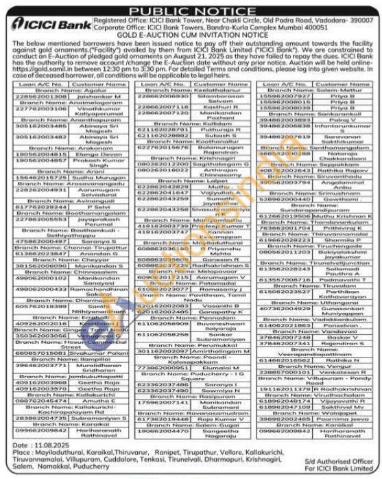 ICICI Bank Gold Auctions Auction in Mayiladuthurai