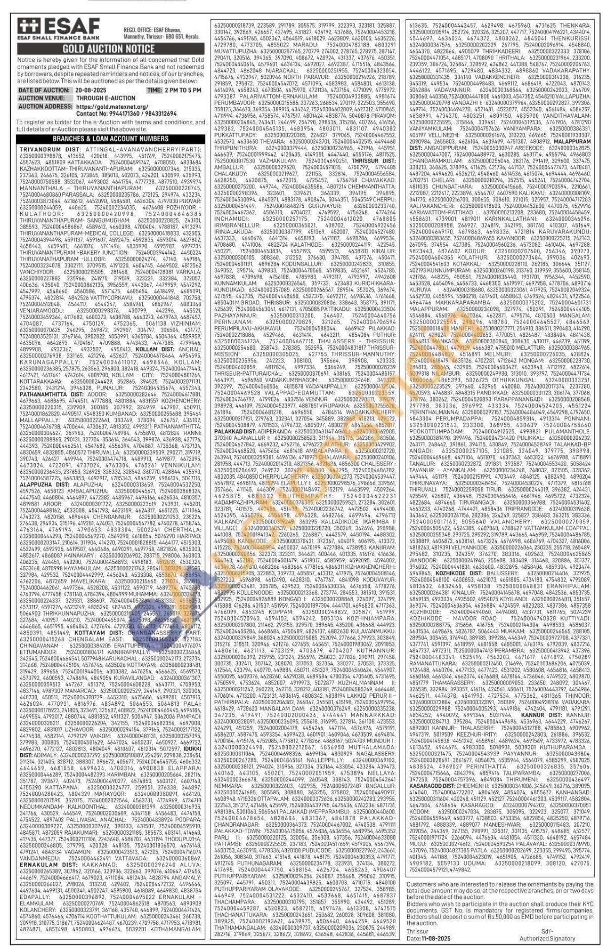 ESAF SMALL FINANCE BANK Gold Auctions Auction in Thrissur