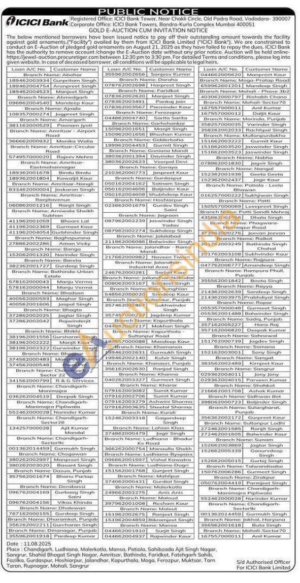 ICICI Bank Gold Auctions Auction in Chandigarh