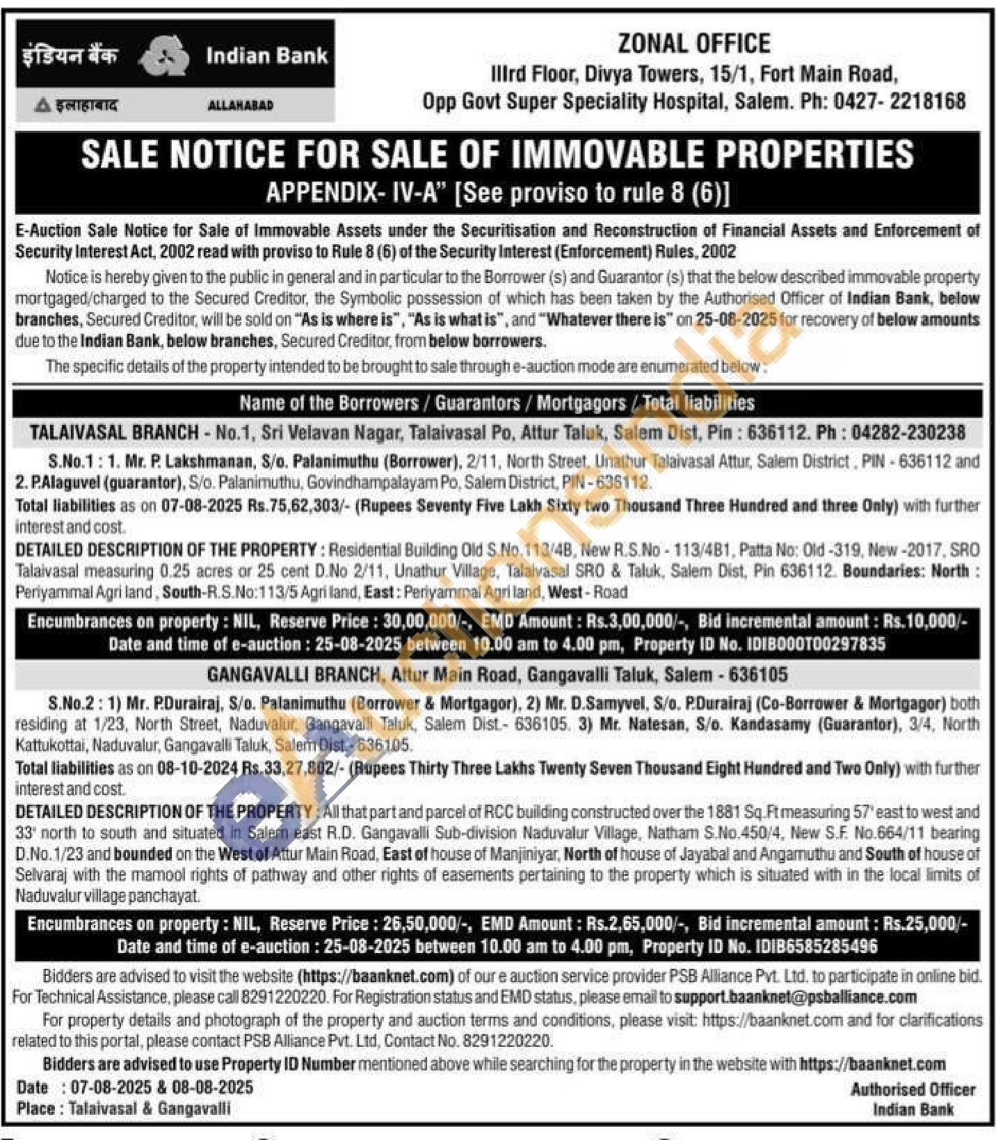 2) All that part and parcel of RCC building constructed over the 1881 Sq. Ft measuring 57' east to west and 33 north to south and situated in Salern east R.D. Gangavalli Sub-division Naduvalur Village, Natham S.No.450/4, New S.F. No.664/11 bearing D.No.1/23 and bounded on the West of Attur Main Road, East of house of Manjiniyar, North of house of Jayabal and Angamuthu and South of house of Selvaraj with the mamool rights of pathway and other rights of easements pertaining to the property which is situated with in the local limits of Naduvalur village panchayat.