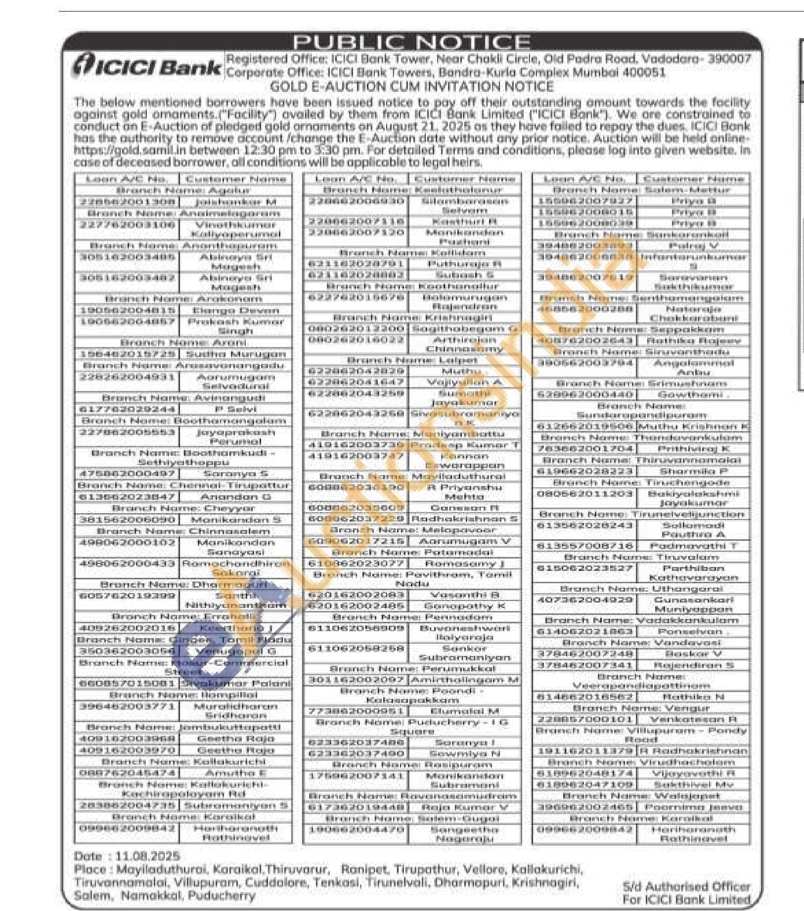 ICICI Bank Gold Auctions Auction in Mayiladuthurai