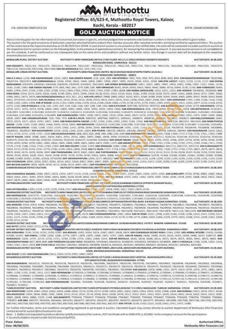 Muthoottu Mini Financiers Limited Gold Auctions Auction in Bengaluru
