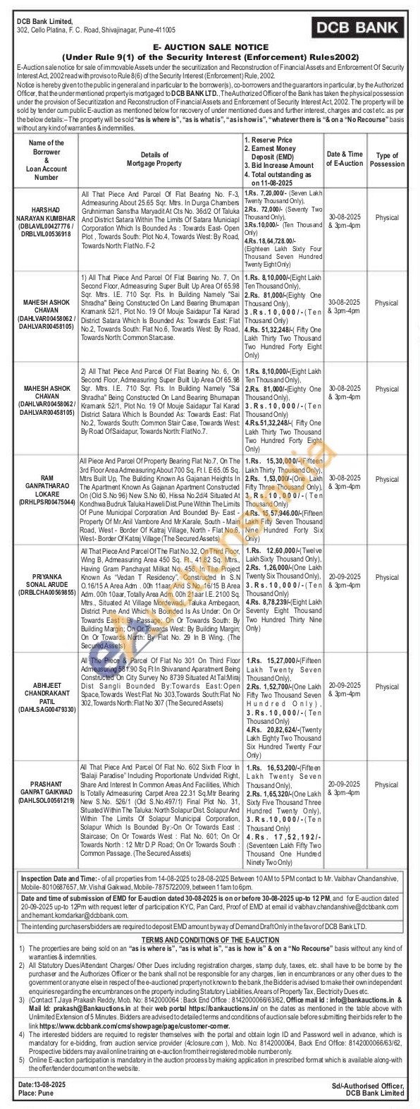 All That Piece And Parcel Of Flat No. 602 Sixth Floor In "Balaji Paradise" Including Proportionate Undivided Right, Share And Interest In Common Areas And Facilities, Which Is Totally Admeasuring Carpet Area 22.31 Sq.Mtr Bearing ) New S.No. 526/1 (Old S.No.497/1) Final Plot No. 31, Situated Within The Taluka: North Solapur Dist. Solapur And Within The Limits Of Solapur Municipal Corporation, Solapur Which Is Bounded By:-On Or Towards East: Staircase; On Or Towards West Flat No. 601; On Or Towards North: 12 Mtr D.P Road; On Or Towards South: Common Passage. (The Secured Assets)