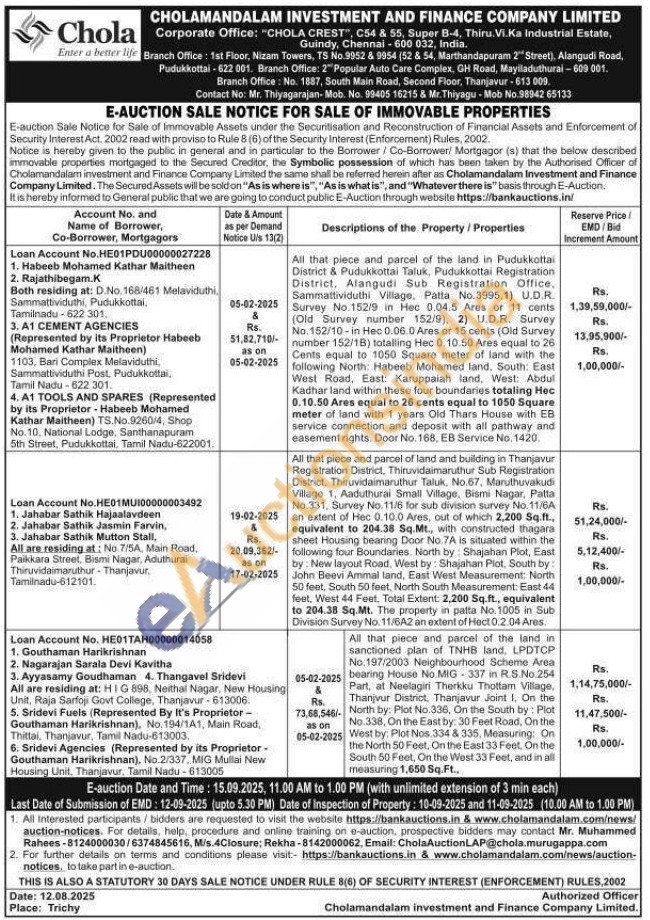 All that piece and parcel of the land in Pudukkottai District & Pudukkottai Taluk, Pudukkottai Registration District, Alangudi Sub Registration Office. Sammattividuthi Village, Patta No.3995,1) U.D.R. Survey No.152/9 in Hec 0.04.5 Ares or 11 cents (Old Survey number 152/9), 2) U.D.R. Survey No. 152/10-in Hec 0.06.0 Ares or 15 cents (Old Survey number 152/18) totalling Hec 0.10.50 Ares equal to 26 Cents equal to 1050 Square meter of land with the following North: Habeeb Mohamed land, South: East West Road, East: Karuppaiah land, West: Abdul Kadhar land within these four boundaries totaling Hec 0.10.50 Ares equal to 26 cents equal to 1050 Square meter of land with 1 years Old Thars House with EB service connection and deposit with all pathway and easement rights. Door No. 168, EB Service No. 1420.
