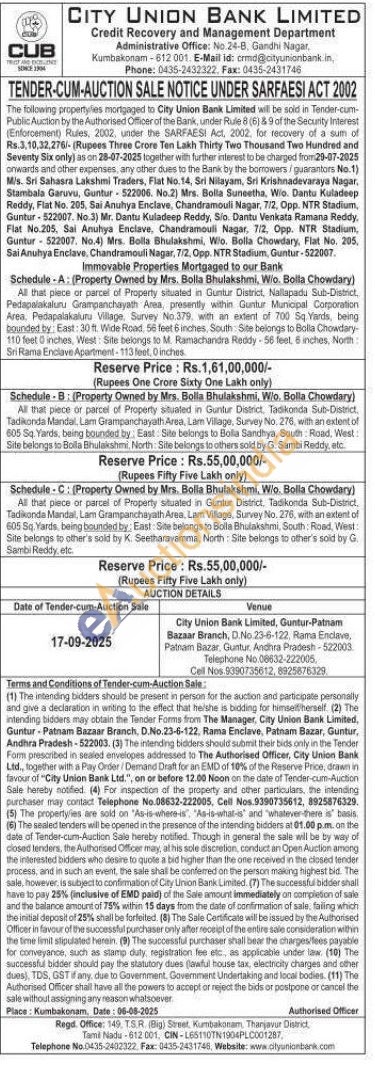 All that piece or parcel of Property situated in Guntur District, Tadikonda Sub-District. Tadkonda Mandal, Lam Grampanchayath Area , Lam Village, Survey No. 276, with an extent of 605 Sq. Yards, being bounded by, East Site belongs to Bolla Sandhya, South Road, West: Site belongs to Bolla Bhulakshmi, North Site belongs to others sold by G. Samti Reddy.