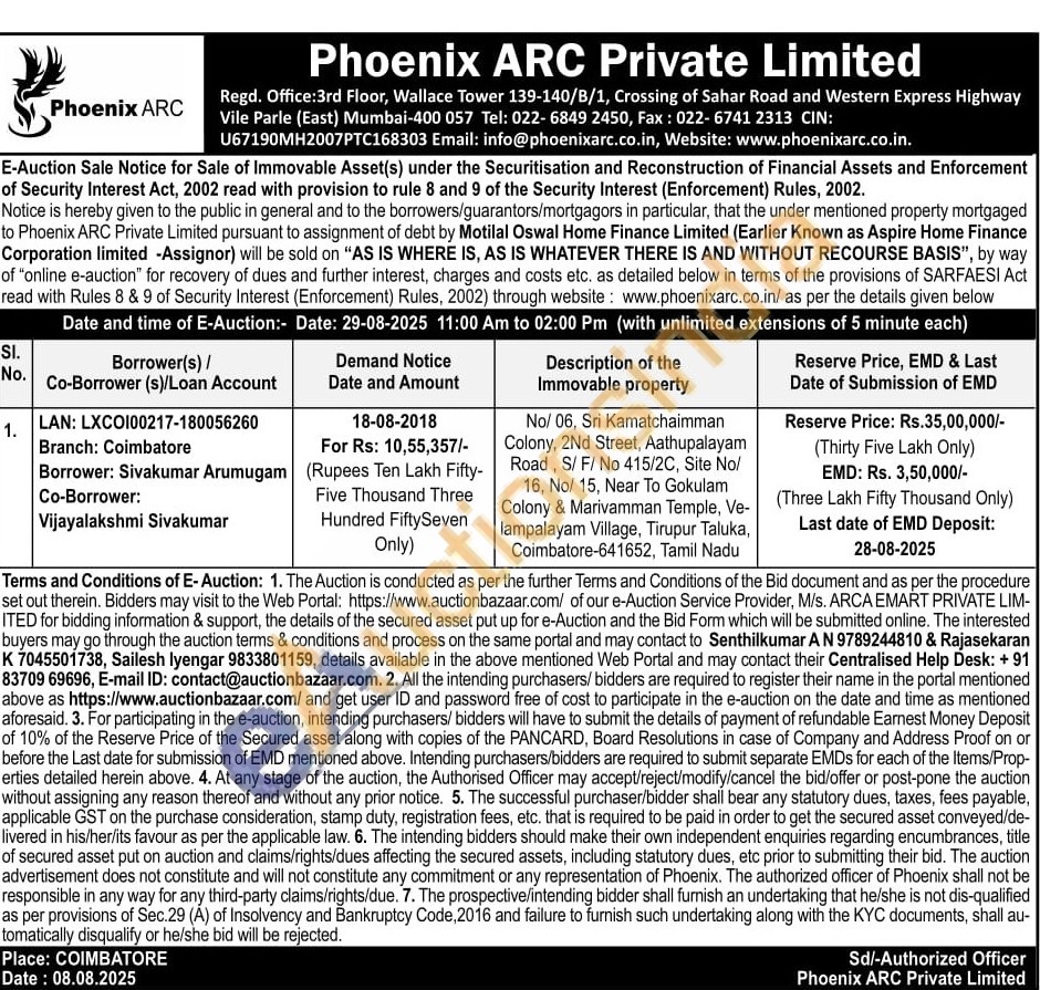 No/ 06, Sri Kamatchaimman Colony, 2Nd Street, Aathupalayam Road, S/ F/ No 415/2C, Site No/16, No/ 15, Near To Gokulam Colony & Marivamman Temple, Ve-lampalayam Village, Tirupur Taluka, Coimbatore-641652, Tamil Nadu